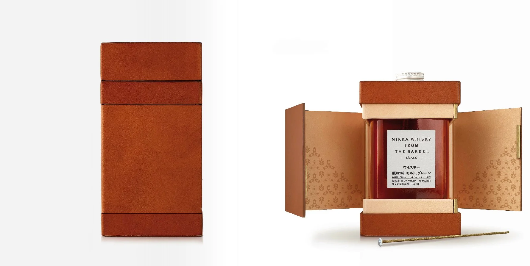 Cet étui est né d’une collaboration étroite avec Nikka. En découvrant la bouteille « From the Barrel », Regis Dajczman a imaginé un écrin sur mesure, entièrement en cuir. Après quatre mois et plusieurs prototypes, il présente un monolithe discret qui protège la bouteille et s’intègre dans un intérieur.