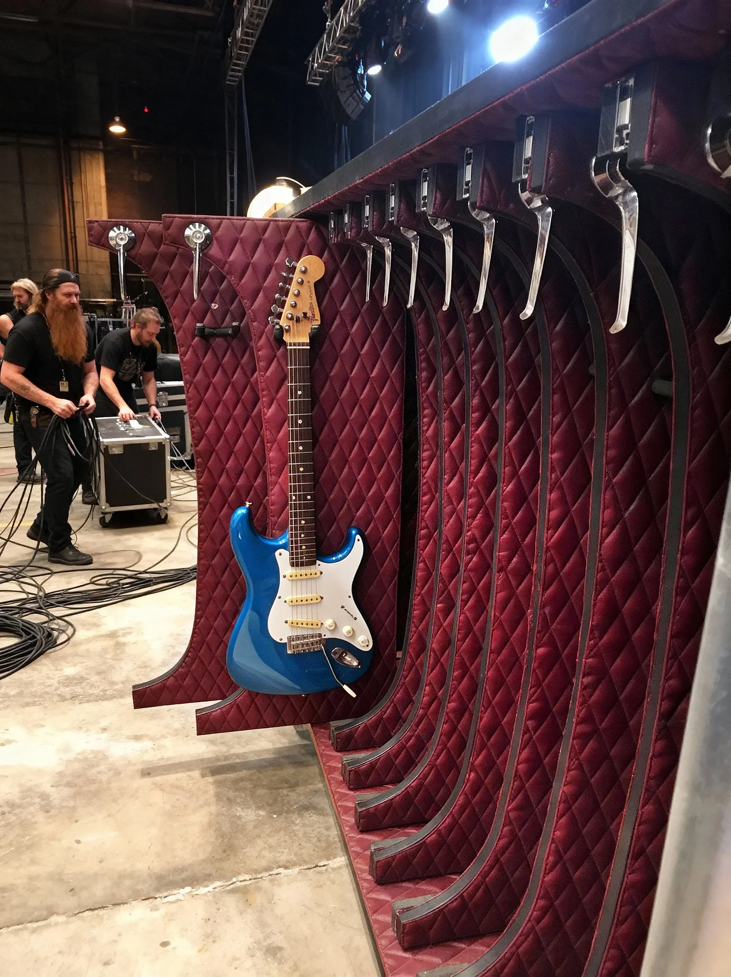 Le ELWOOD a été conçu pour protéger et présenter des guitares haut de gamme dans un minimum d’espace. Contrairement à un rack classique, chaque instrument est isolé dans un tiroir vertical coulissant, capitonné de cuir, montrant un tiers de la guitare sans la sortir.